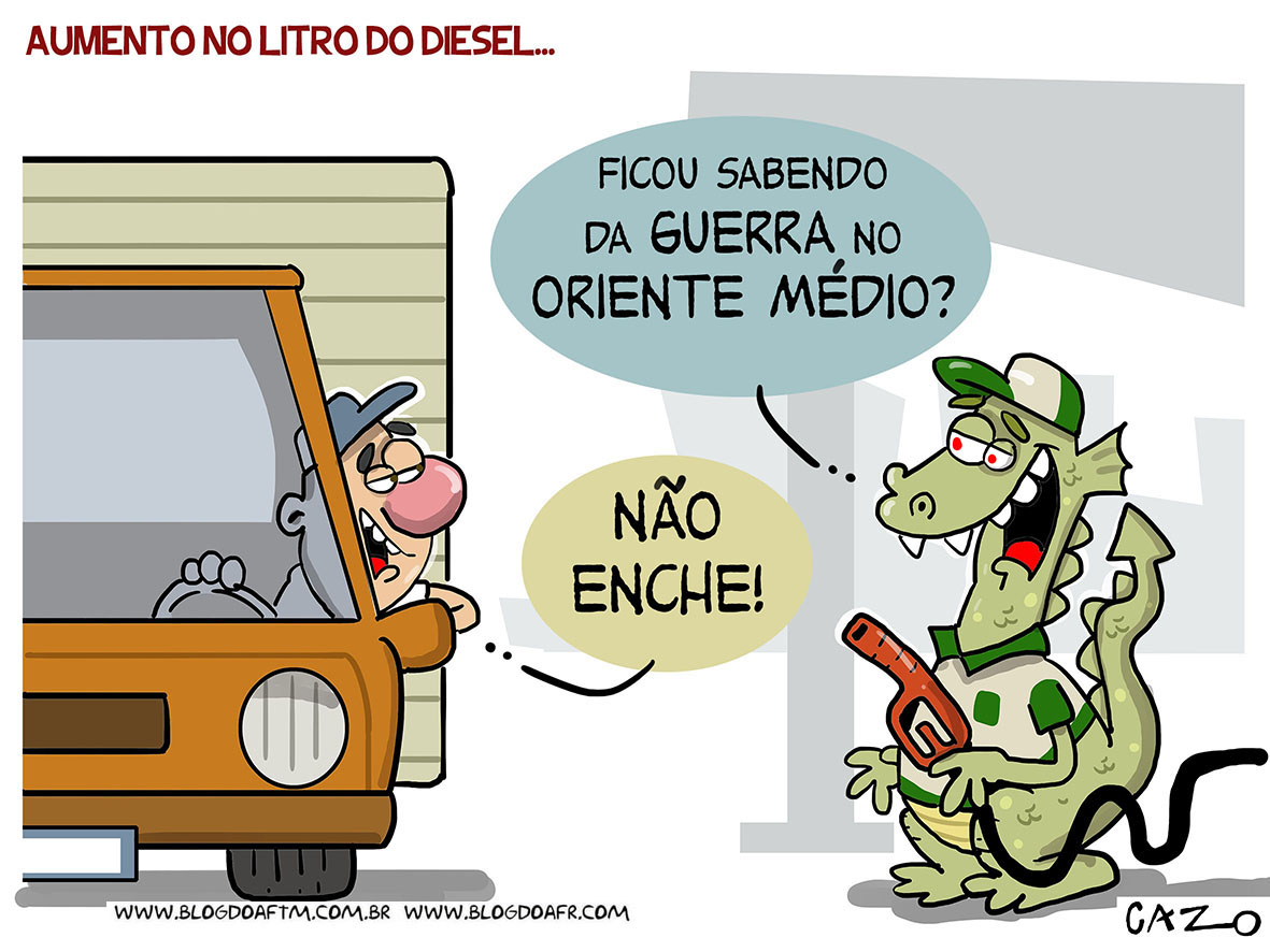 Charges #Charge: Aumento no litro do Diesel por Grupo Editores Blog. 20 de março de 2026 por Grupo Editores Blog. 20 de março de 2026 10 Share on Facebook Share Share on TwitterTweet Share on Pinterest Share Share on LinkedIn Share Send email Mail Print Print Share on Facebook Share Share on TwitterTweet Share on Pinterest Share Share on LinkedIn Share Send email Mail Print Print 0 FacebookTwitterEmail Grupo Editores Blog. postagem anterior #Charge: 22 de maio Você também pode se interessar por: #Charge: 22 de maio 20 de março de 2026 #Charge: Desce e sobe 15 de março de 2026 Charge: Enquanto isso em Brasília 14 de março de 2026 #Charge: Enquanto isso no caso Master 14 de março de 2026 #Charge: Agricultor e petrólea 13 de março de 2026 #Charge: Noite de Brasil no Oscar 13 de março de 2026 #Charge: Inadimplentes 8 de março de 2026 #Charge: Conflito no oriente médio 8 de março de 2026 #Charge: 8 de março 7 de março de 2026 #Charge: Bombas 7 de março de 2026 Deixar um Comentário Cancelar RespostaComents Salve meu nome, email e site neste navegador para a próxima vez que eu comentar.