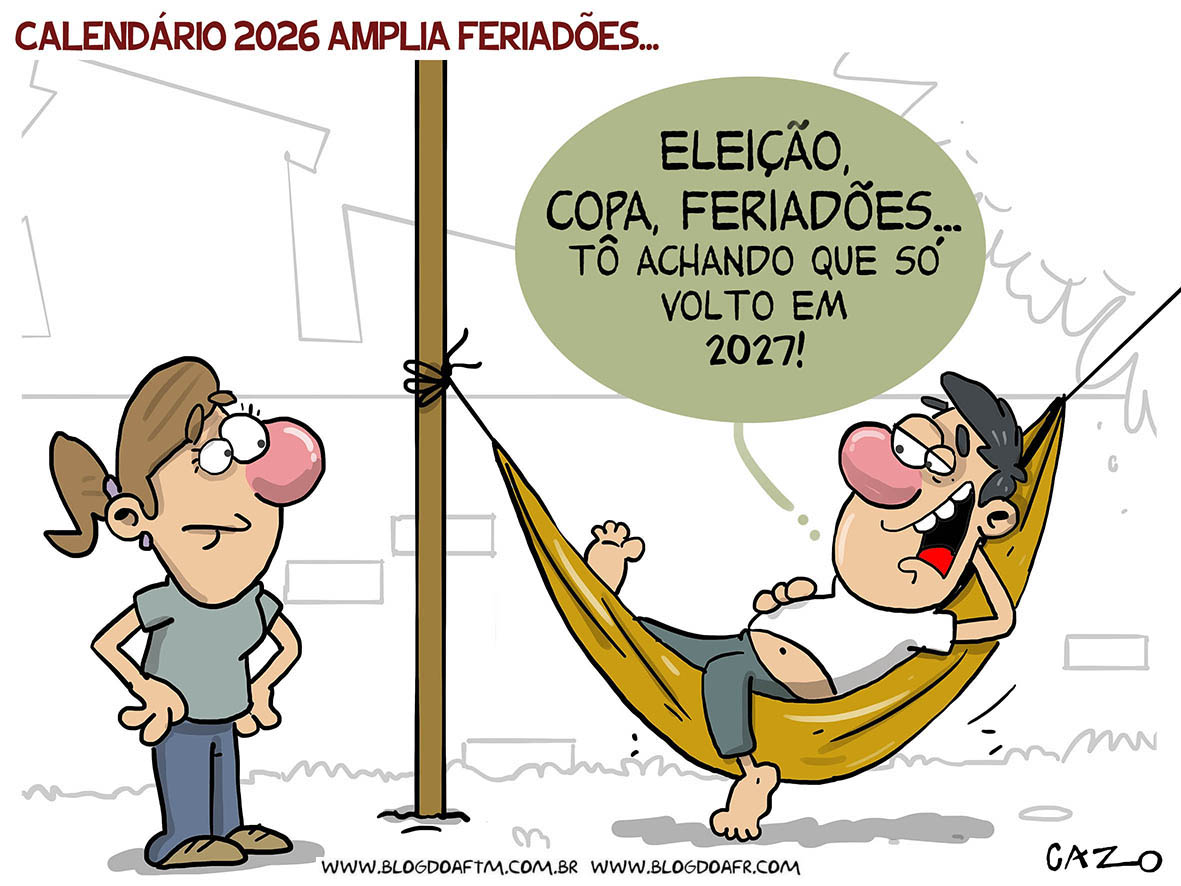 Charges #Charge: Calendário 2026 amplia feriadões por Grupo Editores Blog. 9 de janeiro de 2026 por Grupo Editores Blog. 9 de janeiro de 2026 25 Share on Facebook Share Share on TwitterTweet Share on Pinterest Share Share on LinkedIn Share Send email Mail Print Print Share on Facebook Share Share on TwitterTweet Share on Pinterest Share Share on LinkedIn Share Send email Mail Print Print 0 FacebookTwitterEmail Grupo Editores Blog. postagem anterior Plano de cargos pede maturidade fiscal e estratégia nas prefeituras próxima postagem #Charge: Aumentos e impostos Você também pode se interessar por: #Charge: Início de ano 10 de janeiro de 2026 #Charge: EUA na Venezuela 10 de janeiro de 2026 #Charge: Aumentos e impostos 10 de janeiro de 2026 #Charge: Avanço da inteligência artificial na escrita de... 4 de janeiro de 2026 #Charge: Balanço do ano 3 de janeiro de 2026 #Charge: Decoração de natal 3 de janeiro de 2026 #Charge: Retrospectiva 2 de janeiro de 2026 #Charge: IA transforma os aplicativos de namoro 2 de janeiro de 2026 #Charge: Confraternização 1 de janeiro de 2026 #Charge: Preparativos para virada 28 de dezembro de 2025 Deixar um Comentário Cancelar RespostaComents Salve meu nome, email e site neste navegador para a próxima vez que eu comentar.