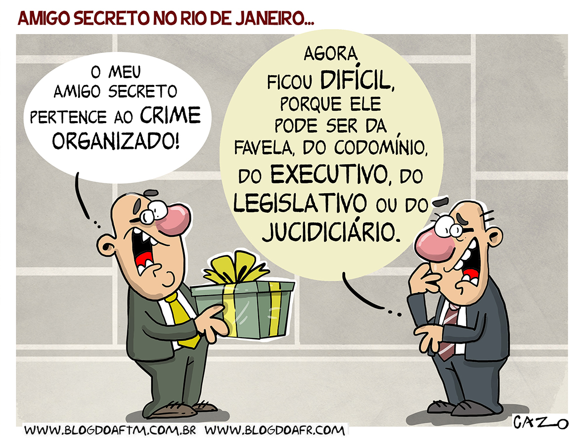 Charges #Charge:Amigo secreto no Rio de Janeiro por Grupo Editores Blog. 20 de dezembro de 2025 por Grupo Editores Blog. 20 de dezembro de 2025 13 Share on Facebook Share Share on TwitterTweet Share on Pinterest Share Share on LinkedIn Share Send email Mail Print Print Share on Facebook Share Share on TwitterTweet Share on Pinterest Share Share on LinkedIn Share Send email Mail Print Print 0 FacebookTwitterEmail Grupo Editores Blog. postagem anterior #Charge: Trauma das chuvas no Sul do país próxima postagem #Charge: Enquanto isso em Brasilia Você também pode se interessar por: #Charge: Enquanto isso em Brasilia 20 de dezembro de 2025 #Charge: Trauma das chuvas no Sul do país 19 de dezembro de 2025 #Charge: Mudança de foco 19 de dezembro de 2025 #Charge: Fachhin tenta implementar código de conduta no... 14 de dezembro de 2025 #Charge: Cometa 3i 13 de dezembro de 2025 #Charge: Primeira parcela do 13 13 de dezembro de 2025 #Charge: Salário 12 de dezembro de 2025 #Charge: Pesquisas 12 de dezembro de 2025 #Charge: Hora de ser forte 7 de dezembro de 2025 #Charge: Pix movimenta R$ 166 bi 7 de dezembro de 2025 Deixar um Comentário Cancelar RespostaComents Salve meu nome, email e site neste navegador para a próxima vez que eu comentar.