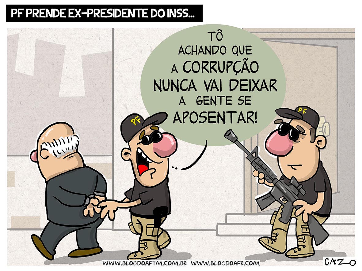 Charges PF prende ex-presidente do INSS por Grupo Editores Blog. 15 de novembro de 2025 por Grupo Editores Blog. 15 de novembro de 2025 11 Share on Facebook Share Share on TwitterTweet Share on Pinterest Share Share on LinkedIn Share Send email Mail Print Print Share on Facebook Share Share on TwitterTweet Share on Pinterest Share Share on LinkedIn Share Send email Mail Print Print 0 FacebookTwitterEmail Grupo Editores Blog. postagem anterior Transparência e LAI: limites reais na abertura de dados fiscais próxima postagem #Charge: PL ANTIFACÇÃO Você também pode se interessar por: #Charge: COP30 busca criar fundo para ajudar as... 15 de novembro de 2025 #Charge: Crime organizado na Amazônia 15 de novembro de 2025 #Charge: PL ANTIFACÇÃO 15 de novembro de 2025 #Charge: Enquanto isso no CPI do crime organizado 9 de novembro de 2025 #Charge: Jurados 8 de novembro de 2025 #Charge: Saúde Masculina 8 de novembro de 2025 #Charge: Morre Lô Borges. 7 de novembro de 2025 #Charge: Enquanto isso na COP30 7 de novembro de 2025 #Charge: EUA bombardeiam barco 2 de novembro de 2025 #Charge: STF e cargos públicos 2 de novembro de 2025 Deixar um Comentário Cancelar RespostaComents Salve meu nome, email e site neste navegador para a próxima vez que eu comentar.